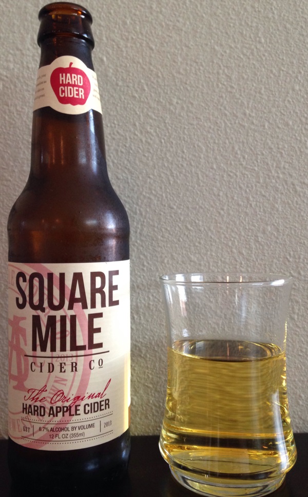 Review of Square Mile Cider Company’s “The Original Hard Apple Cider”. I tried this a couple years ago and remember after two sips thinking I got a bad bottle (re-fermented?), and pouring it down the drain. They did have a re-fermenting recall in 2013, but apparently only 22oz bottles, not 12oz. After seeing singles on sale, I decided to give it another try. On the same day as I bought it, the checker at the store said she thought it was pretty good, as did a blog reader. Will I like it better this time around?