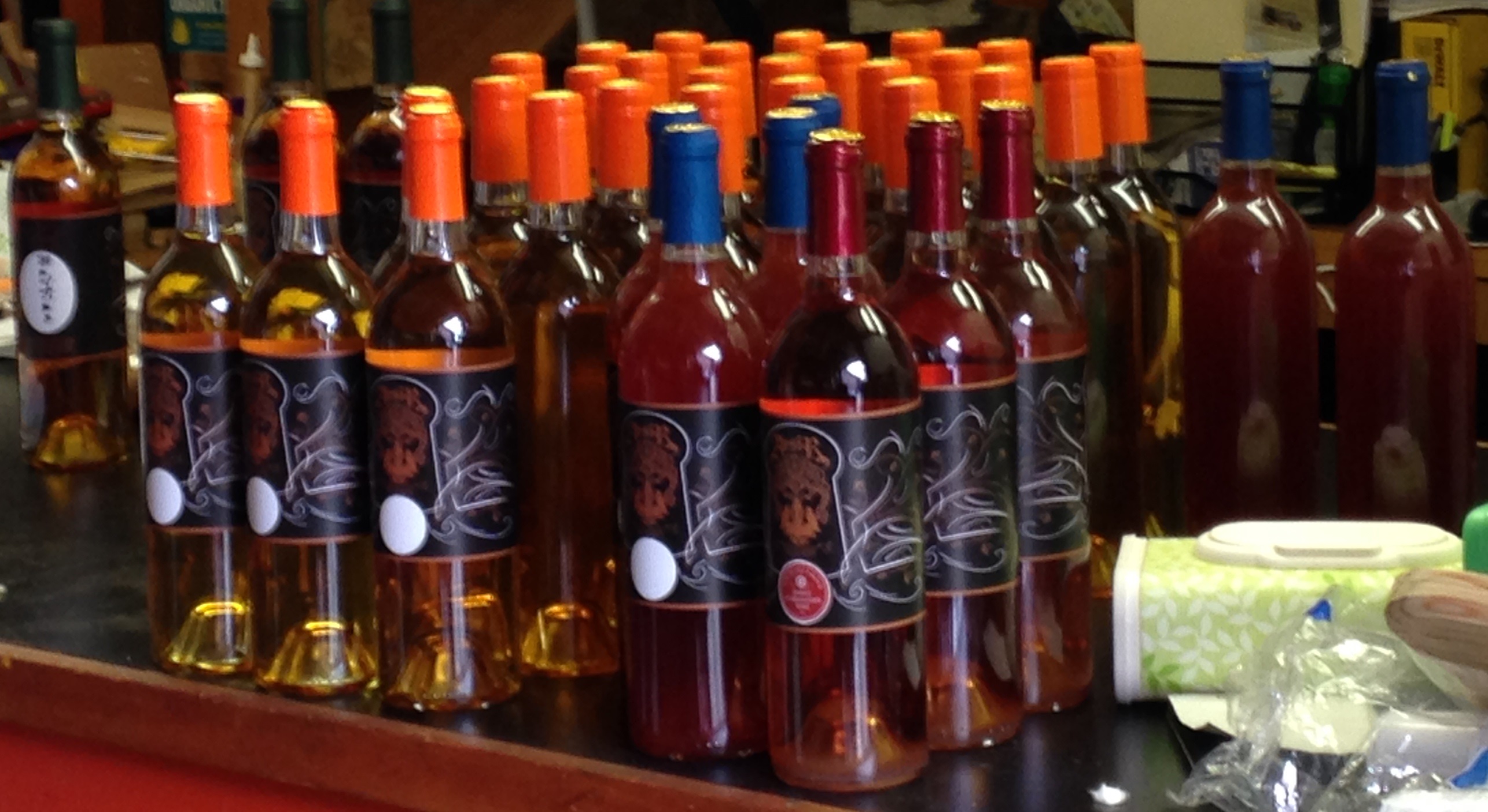<the variety our tasting companions wanted wasn’t in bottles, so Erik made up a bottle right there!>