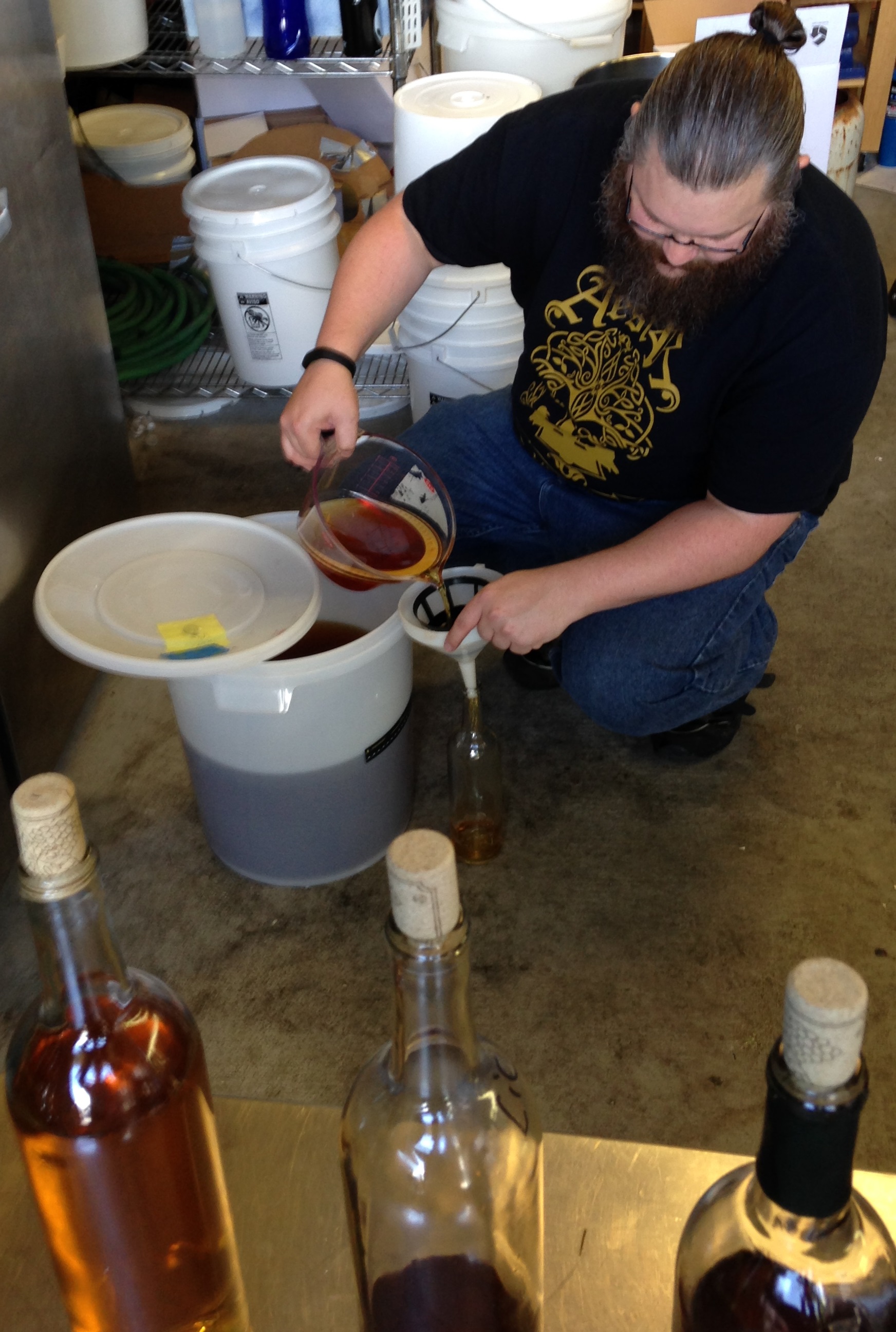 Æsir is a one man operation, started & run by Erik Newquist. He has degrees in Microbiology and Chemistry, which brings a scientific background to the art of mead making. Erik has been making mead for over 14 years, but established Æsir in 2012. He started making mead in college (Oregon State in Corvallis) with his roommate. The mead making continued after college, but only for himself, parties, gifts, etc. After spending time at unfulfilling corporate jobs, he decided to make the jump to starting a mead making business. That process started in 2011, with a class on writing a business plan, and overall strategizing. The first commercially available bottles of Æsir mead were sold in April 2014. The company name and logo is based on Nordic mythology, a nod to Erik’s Scandinavian heritage. Check out this issue of American Mead Maker starting on page 11 for an article on the birth of Æsir Meadery!