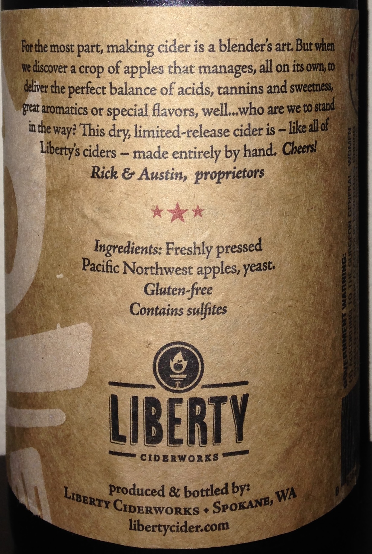 Availability: Fairly limited. Per the cidery they currently self-distribute to Spokane and Seattle. In Seattle, I have seen them at Capitol Cider, Schilling Cider House, Total Wine, Full Throttle Bottles, and Special Brews. Look for them in bottle shops in WA which specialize in local craft cider. Liberty’s website lists some locations to find their ciders.