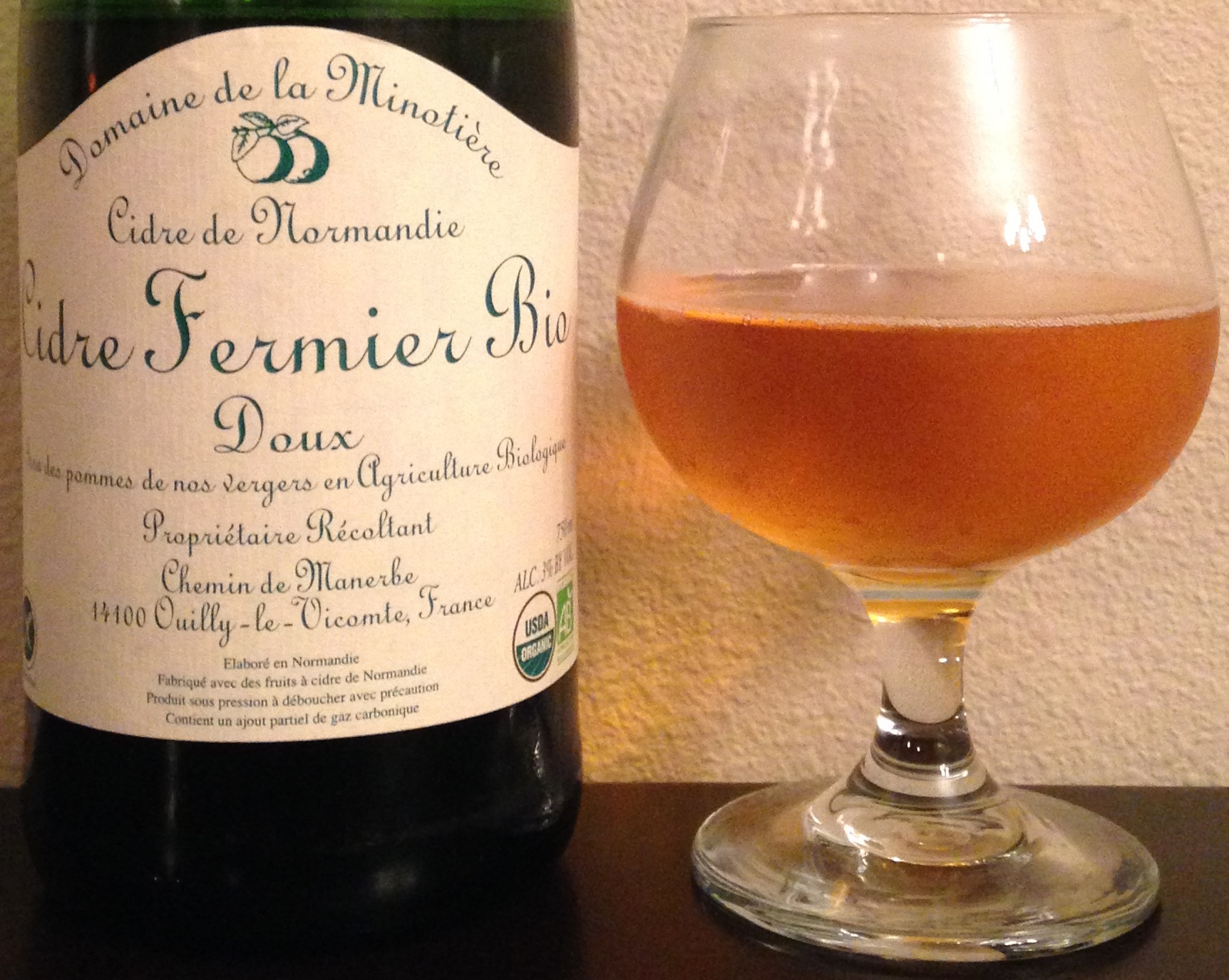 Pierre Huet (Cambremer Normandy France) Cidre Bouche Brut (4.5% ABV) – This cider underwent secondary fermentation in the bottle and was made with 7 or 8 varieties of cider apples by a 5th generation cidermaker.  Semi-dry to semi-sweet.  Clean (no funk).  Low tannins.  Flavorful, apple forward, and easy to drink.  French Cider’s website has an article on their visit to Pierre Huet as well as an interview with the cidermaker, François-Xavier Huet.  Retails for $13-18 / 750ml bottle.