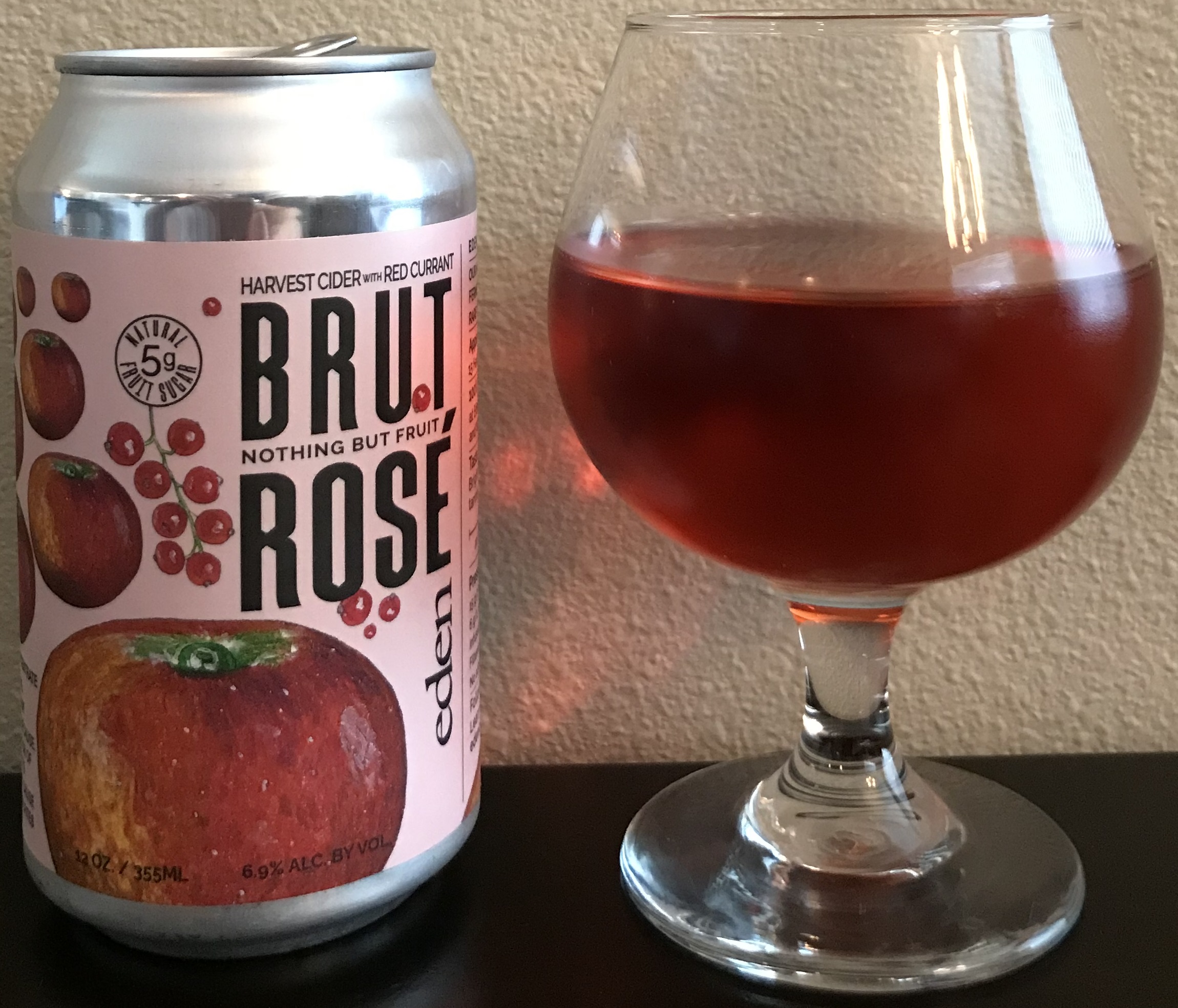Cider Description: ‘Brut Rosé’ tastes of bright red berry and apple flavors balanced by light earthy tannin and lingering crispness. It is filtered, infused with red currants and superbly crushable, with only 5g of residual sugar per can. 15 heirloom apple varieties, 100% locally grown (Eden Orchards, Scott Farm, Sunrise Orchards, Windfall Orchard). 15 g/L residual sugar from arrested fermentation. 6 g/L malic acidity, medium tannn.